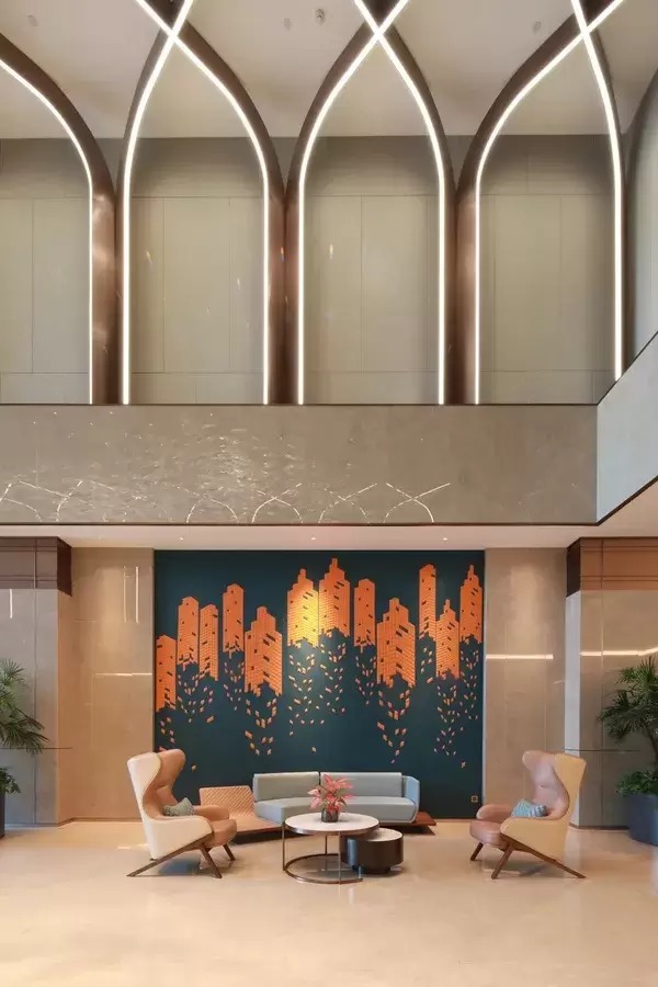 大堂作为用户进入的第一空间,是奠定酒店基调的重要区域,舒适明亮的照明氛围将给用户带来温暖、和韵的体感,同时又不失格调与质感。